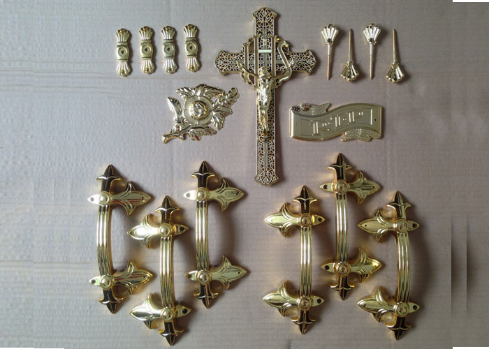 Φέρετρων νεκρικά εξαρτημάτων πλαστικά επίχρυσα γάντια τραβήγματος τεχνών διακοσμήσεων χριστιανικά